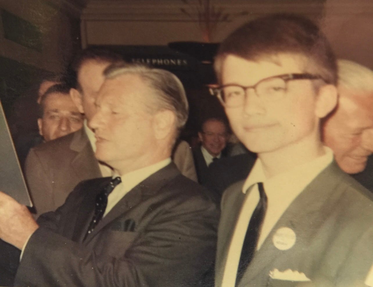 That’s Governor Nelson Rockefeller (R-NY), left, and me, right, during a brief hallway interview at the Hotel Ft. Des Moines, in Des Moines, just days after Rockefeller’s April 30, 1968, announcement that he was running for the 1968 Republican presidential nomination.